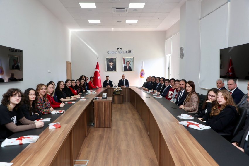 Vali Muammer Erol, TÜBİTAK Proje Yarışmalarında dereceye giren öğrencileri, İl Milli Eğitim Müdürü Mehmet Fatih Vargeloğlu, proje danışmanı öğretmenler ve okul müdürleri ile birlikte kabul ederek, başarılarından dolayı kutladı.